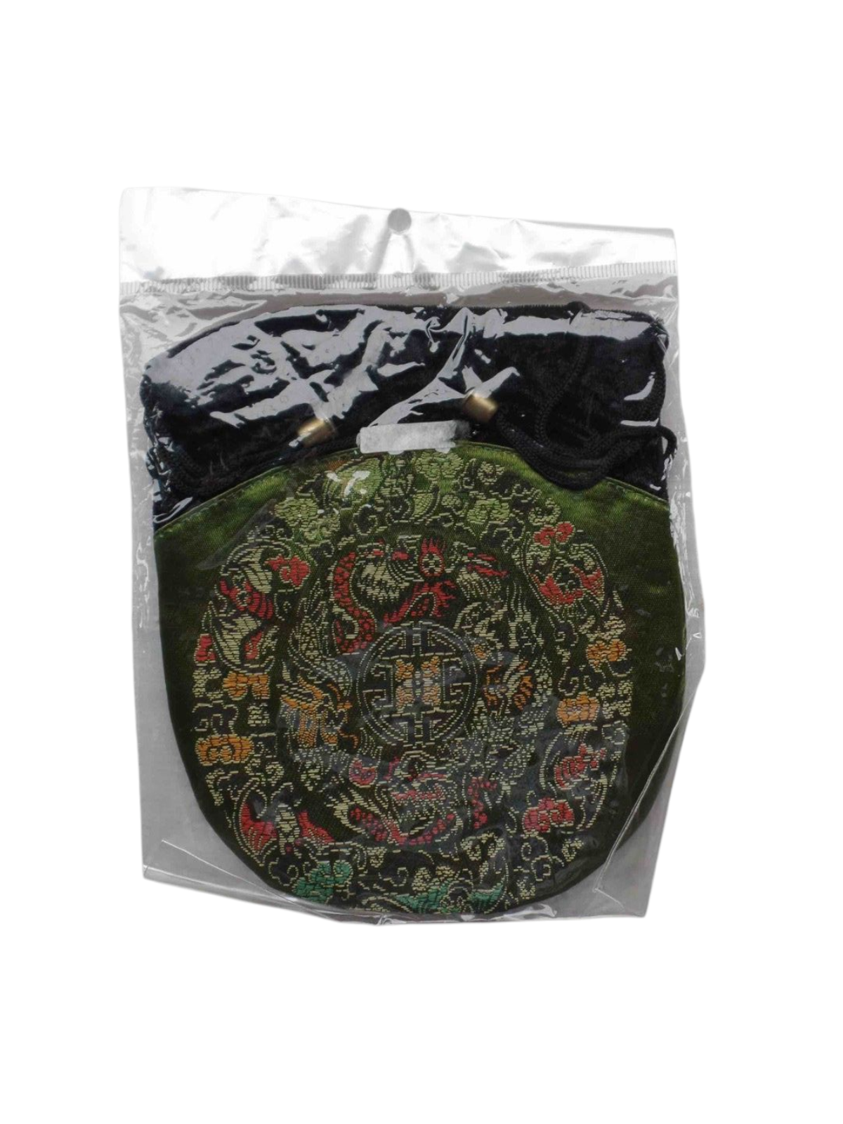 bolsa seda preta e verde medindo 16 cm x 21 cm