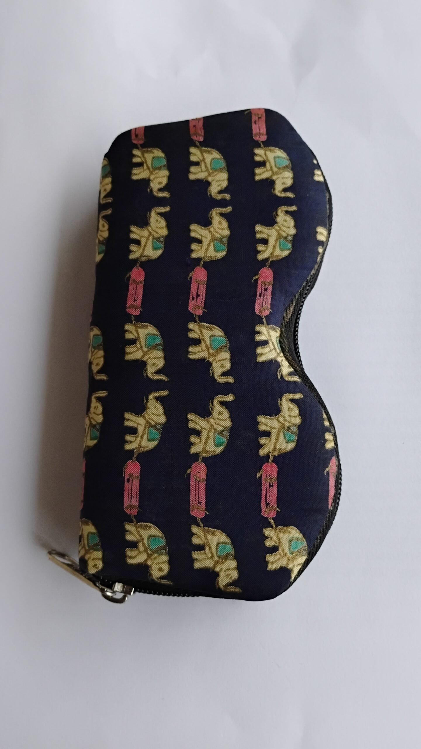 porta oculos em seda preto com elefantes